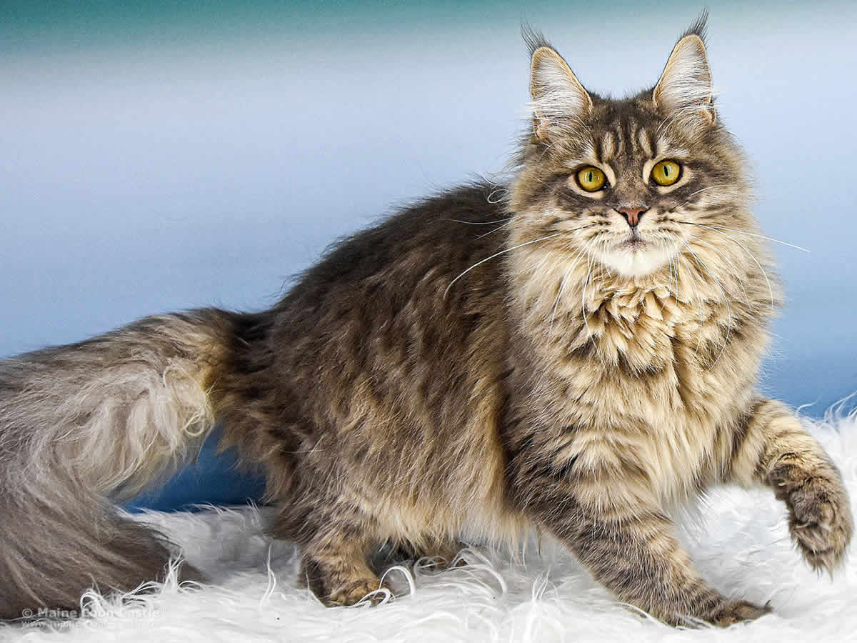 Die Maine Coon Katze Lexy entwickelt sich harmonisch und entspricht von Typ und Charakter ihrer Mutter Evi of Maine Coon Castle.