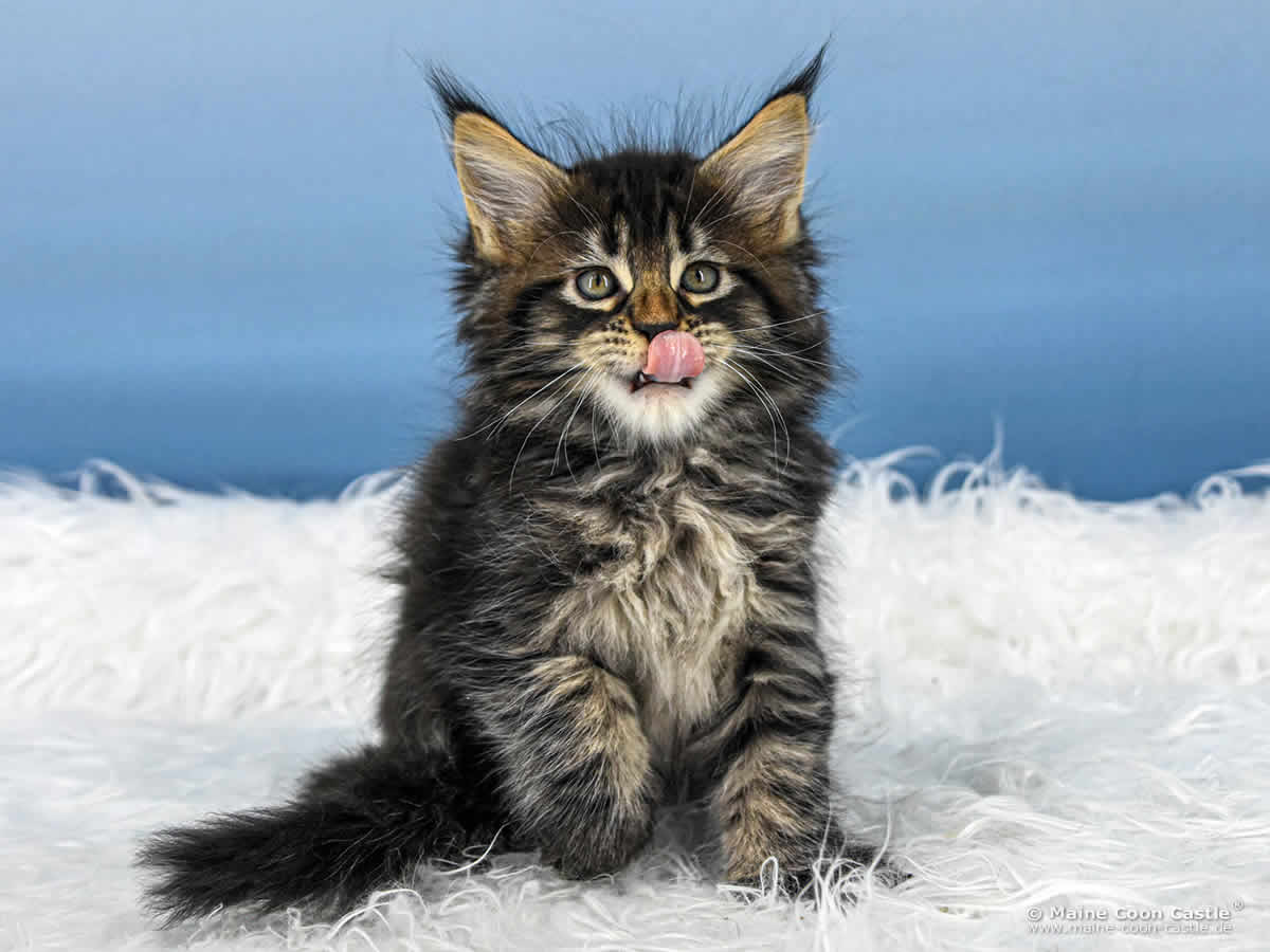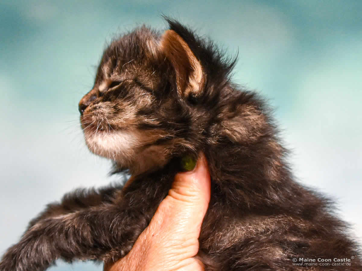 Dieses Maine Coon Kitten stammt aus traditionsreichen und erfolgreichen alten Zuchtlinien. Interessierte Maine Coon Liebhaber haben hier die Möglichkeit, einige seiner bedeutenden Vorfahren kennenzulernen, die teilweise noch heute in der Maine Coon Zucht Maine Coon Castle leben.