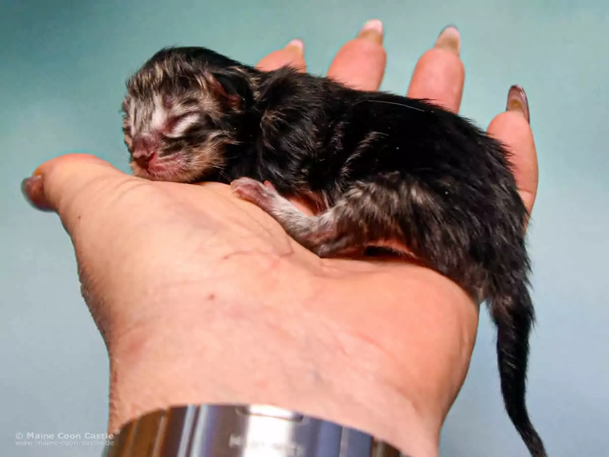 Zina of Maine Coon Castle hatte einen schwierigen Start in das Leben. Bereits in der ersten Nacht hat sie 8 g abgenommen. Zina war ein quirliges, winzig kleines Mädchen mit großem Lebenswillen. Gemeinsam mit ihrer Mama Daisy haben wir liebevoll um sie gekämpft. Zina durfte nur wenige Tage leben und ist nun ein helles Sternchen am CastleLand Firmament. Zina, du bist nur wenige Stunden nach deiner Schwester Zarina von uns gegangen. Wir wünschen dir eine gute Reise.