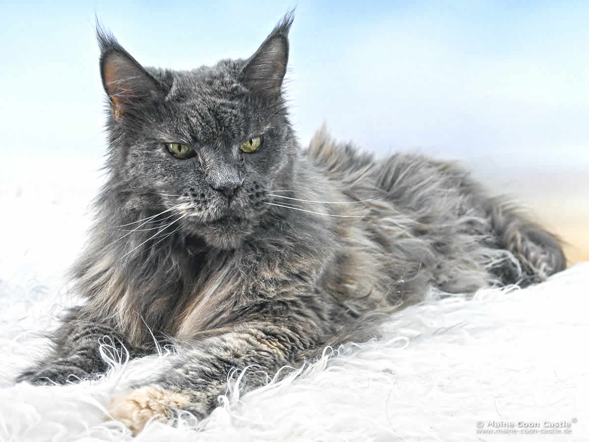 Daireen ist eine erfahrene und hingebungsvolle Katzenmutter, die uns bereits viele außergewöhnlich schöne Maine Coon Babys geschenkt hat. Mit ihren Nachkommen haben wir die Zuchtlinien von Maine Coon Castle gezielt und erfolgreich weiterentwickelt. Die Namen ihrer Partner sind längst zu Legenden geworden: Zeus of Maine Coon Castle, Yaron of Brenda’s Garden und Zeno of Maine Coon Castle – das Beste vom Besten.