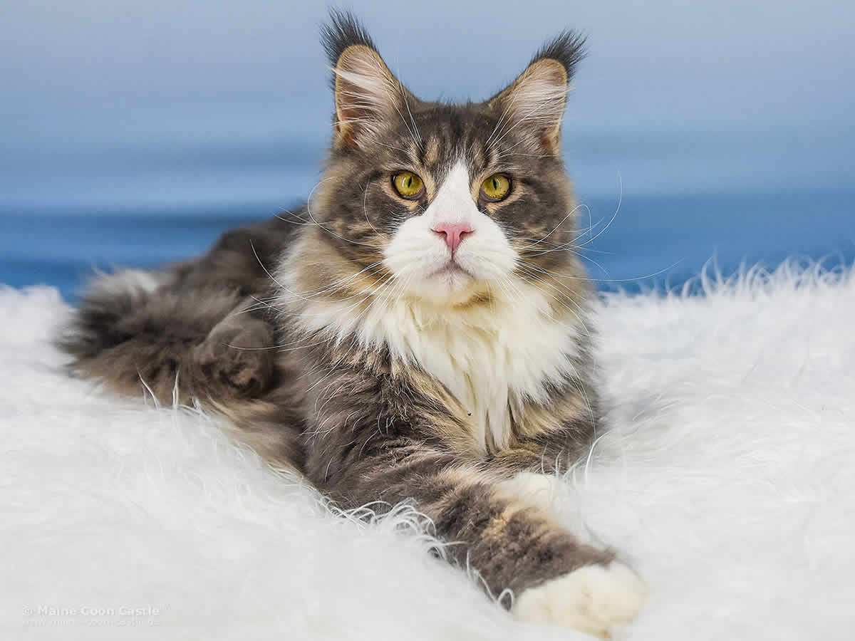Der Maine Coon Kater Max of Maine Coon Castle ist ein Geschenk von Maine Coon Kater Weltchampion Buddy of Maine Coon Castle. Mein Freund Buddy hat sich selbst übertroffen. Max entspricht dem alten Maine Coon Typ. Unsere Zuchtarbeit der letzten Jahre ist erfolgreich.